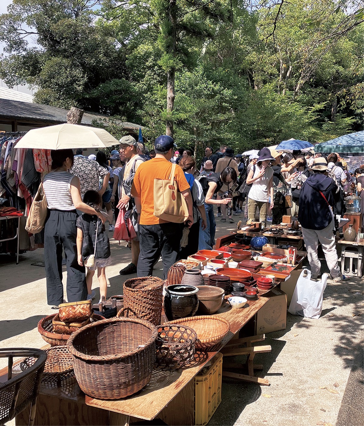 全国からおよそ50店が出店し、夏の風物詩としておなじみの人気イベント。会場には、骨董品や古道具といった焼き物や工芸品、着物などが並び、掘り出し物も見つかると毎年人気を博す。