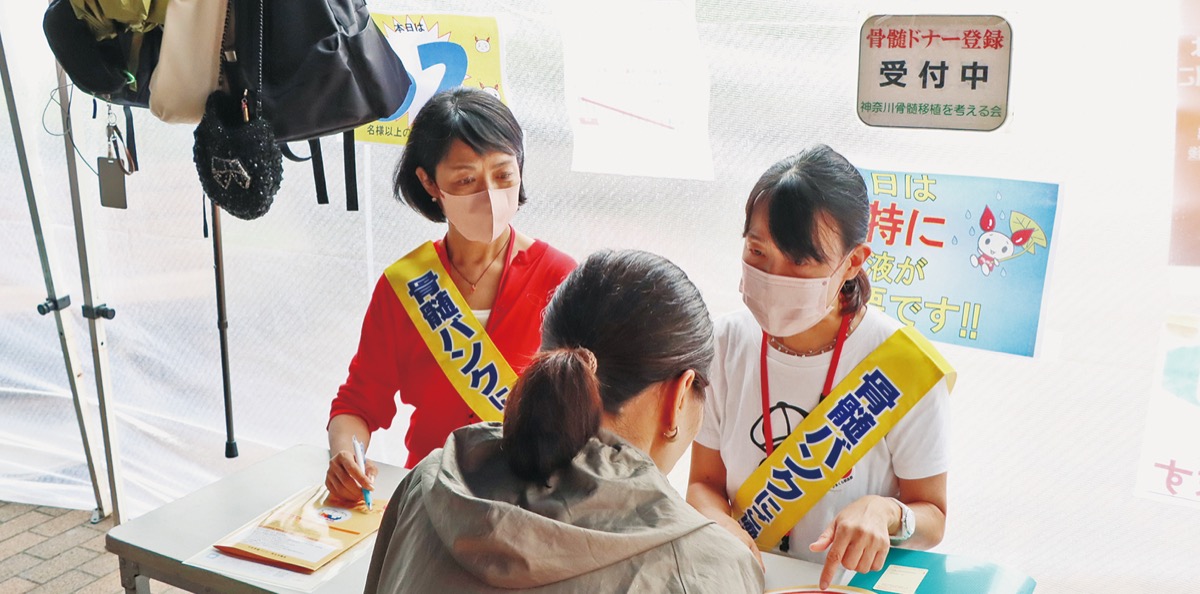 鎌倉市役所前で7月12日、日本赤十字社らによる献血&骨髄バンクドナー登録会が実施された。献血は55人、ドナーには10人が登録した。