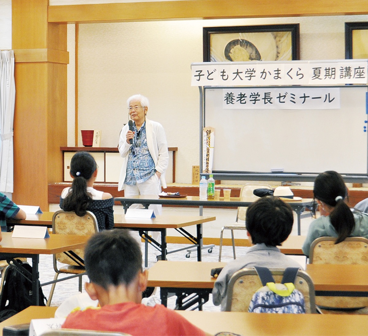 東京大学名誉教授の養老孟司さんが学長を務め、小学生対象の参加型授業を企画する子ども大学かまくら。23日は養老さんが小学生の疑問に応え、「蝶々の幼虫になぜ寄生ハエがいるの」「蟻を食べたら酸っぱいのはなぜ」などユニークな質問が飛び交った。堀井海志君(4年)は「人間と違う生命力を持つ昆虫はすごい」と話し、講義を熱心に聞いていた。