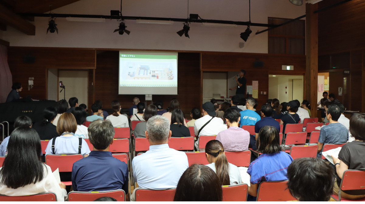 会場では高橋洋平教育長らが、「自分らしく学び、自分らしく成長できる学校」のビジョンを説明。年間授業数は既存中学の1015時間から減らして770時間と自分のペースで学べる教育課程、生徒30人に対して教員・スクールカウンセラーなど10人ほどのスタッフ配置、市が行う探究学習「ULTLAプログラム」の要素を取り入れた新教科を設ける方針が伝えられた。