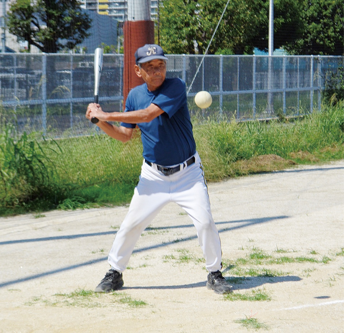 敬老の日(9月16日)を前にした9月12日、最高気温が30度を超える中、山崎浄化センターのグラウンドでは元気にソフトボールを楽しむシニアたちの姿があった。