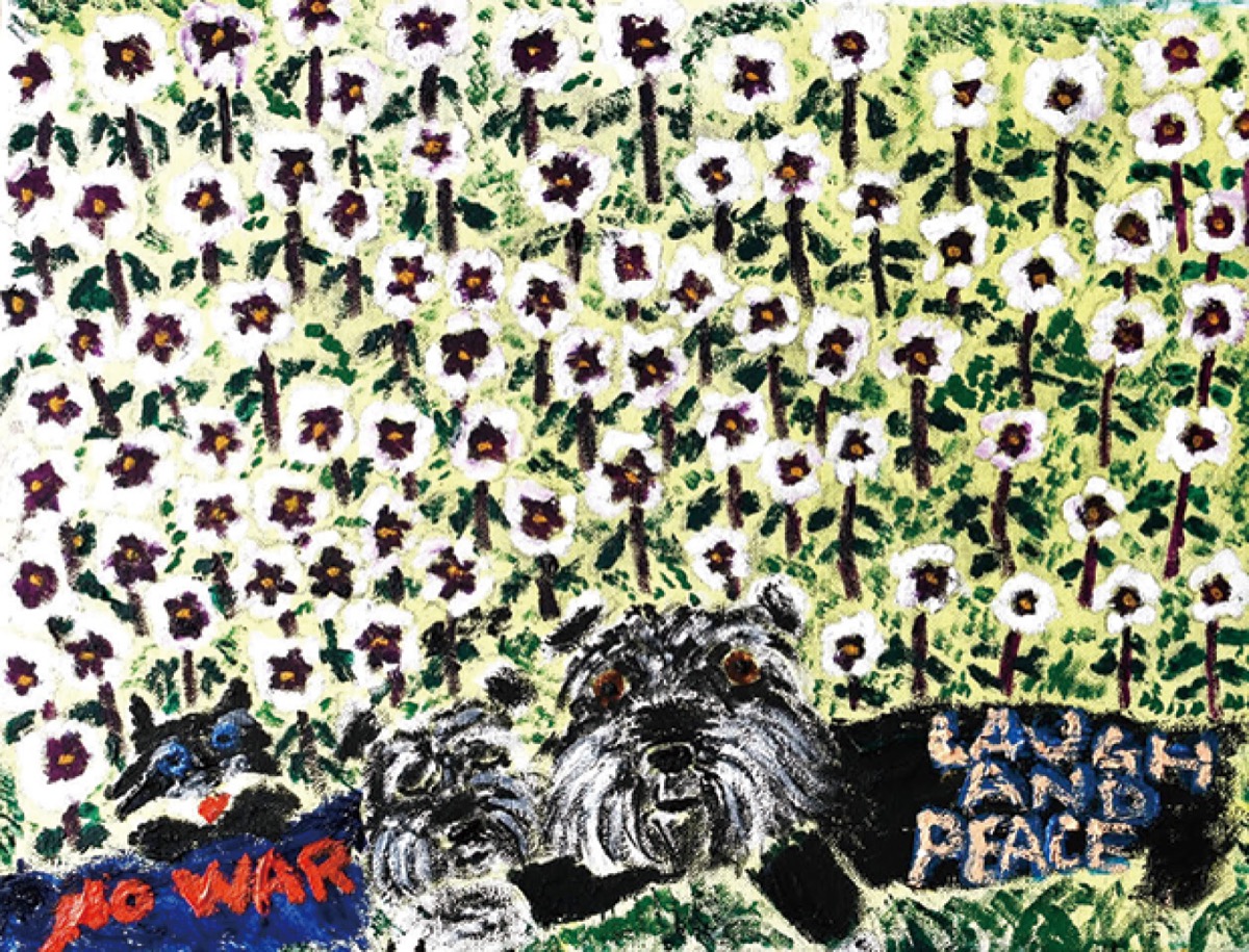 2003年に統合失調症と診断されてから闘病を続ける加田さん。10年前から道工房に通い、愛犬「ギルビー」「ムク」、猫の「YUI」を中心に描いてきた。通所当初は1人で電車に乗ることもできなかったが、アート作品や筆文字作品で受賞を経験するなど、少しずつ自信もついた。今では週3〜4日通所し、「絵を描いている時は楽しい」と話す。