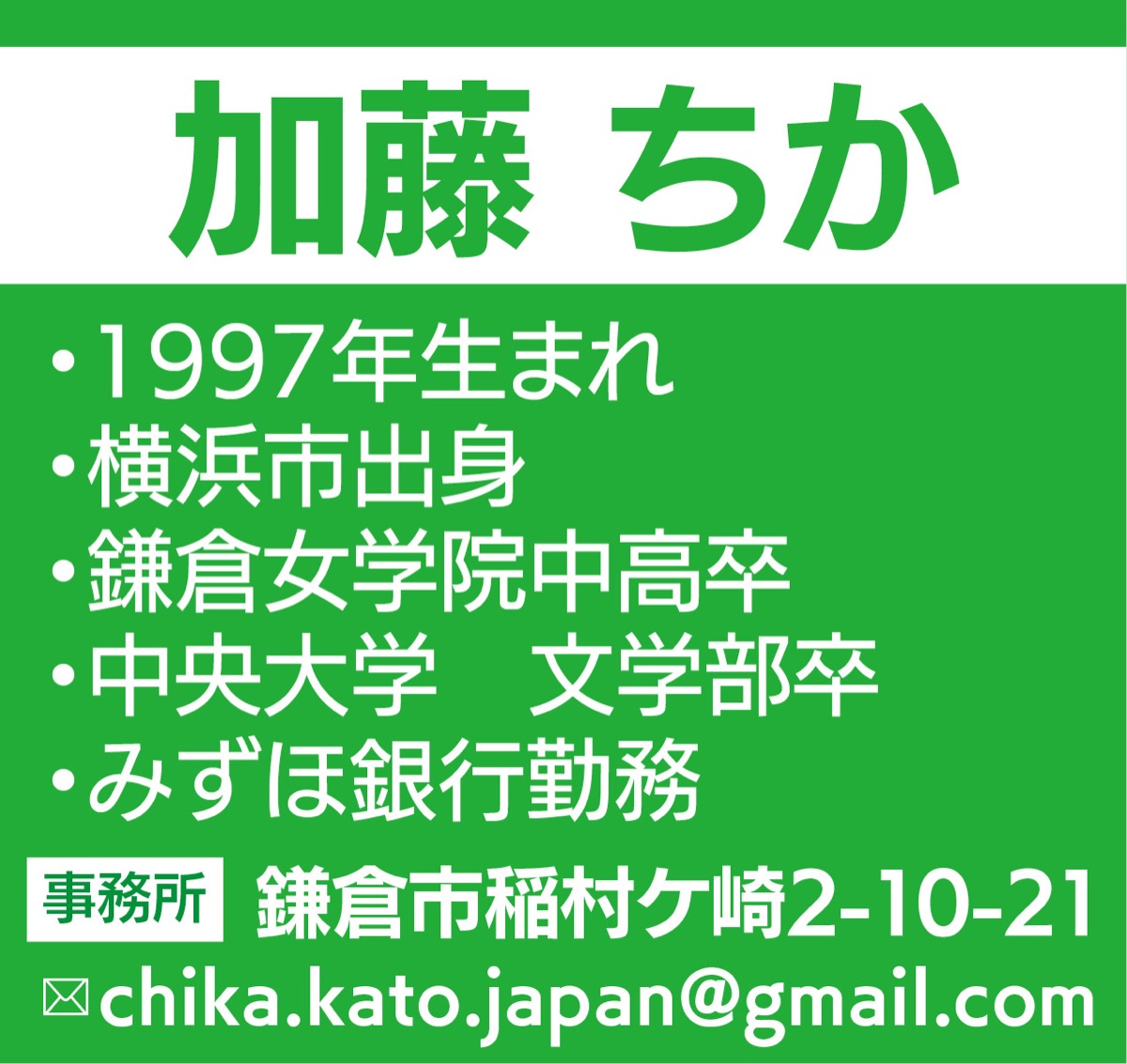 まだ真っ白な26歳。皆様の声を伺い・学びながら、これからの日本のために一生懸命努めます。一緒に、鎌倉から「いい国」つくりましょう!