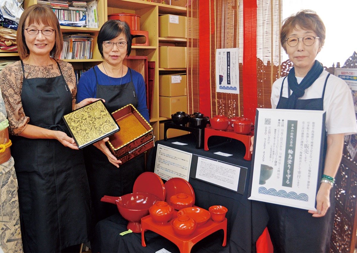同店で販売しているのは、朱塗りの御膳セットやおひつ、細かな沈金の細工が施された5段の重箱など。売り切れ次第、販売を終了する。寄付金や販売用の寄付品も随時受け付けている。「東日本大震災後も『被災地を忘れない』という思いで活動してきた。まずは店を覗いてもらえたら」(スタッフ)