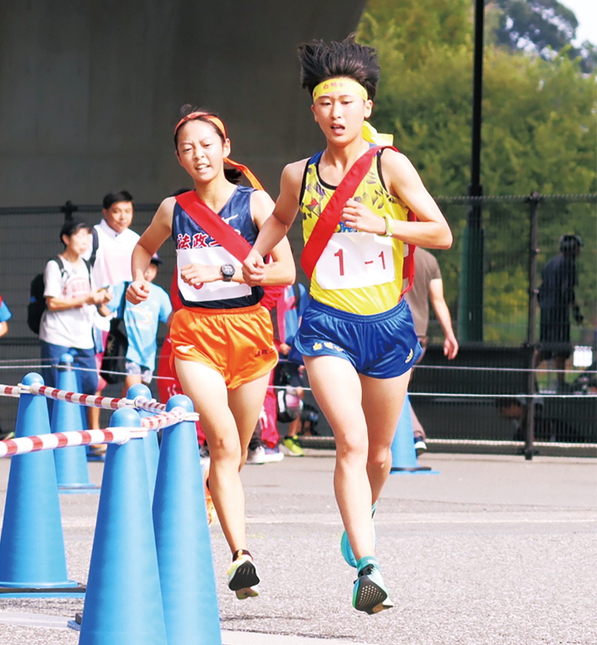 田村さんは「6Kmの練習をしていなかったので不安だった」と話すも、先頭集団でレースを進める。先頭は残り1周で2校に絞られ、優勝した白鵬女子高にラスト300mまで食らいつくも、最終的には18秒差で区間2位(19分54秒)となった。法政二高は主力選手を欠きながら総合3位でフィニッシュし、上位6校に与えられる南関東大会(11/16・群馬)へ。「万全な状態でない中での3位はうれしい。全国の切符を必ず掴みたい」と意気込む。