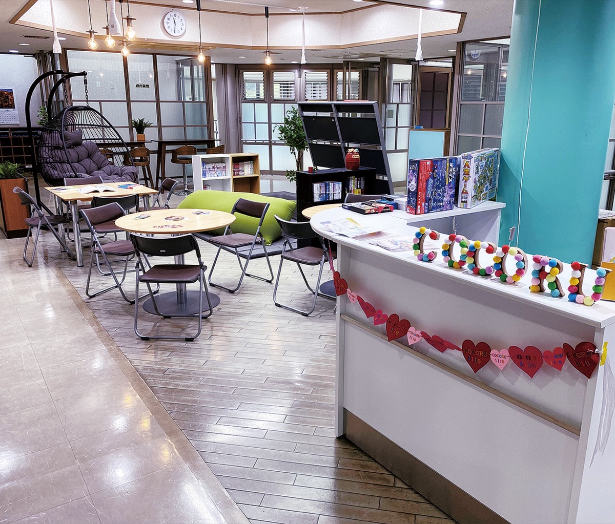 ロビーには、くつろげるハンギングチェアやクッション、ボードゲームなどを用意。友人と話をしたり、新たな出会いが生まれたりする、つながりの創出も狙う。勉強や読書ができる自習室のほか、ダンスや音楽活動に使える多目的室、調理や手芸、工作に使える調理実習室なども備える。