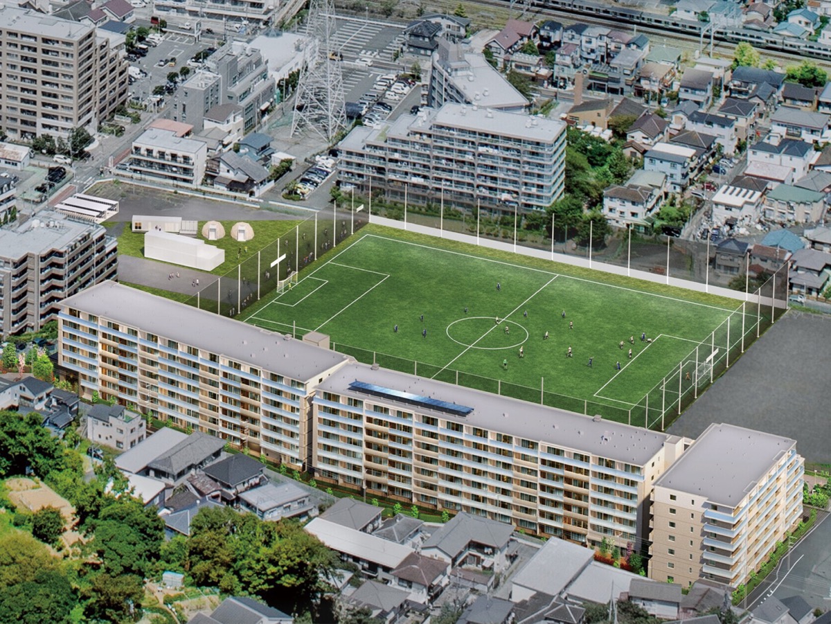 鎌倉市台で12月7日から利用が始まったサッカー場「ゴールドクレストスタジアム鎌倉」。その隣で建設された新築分譲マンション『クレストシティ鎌倉大船サウス』も12月上旬に竣工した。