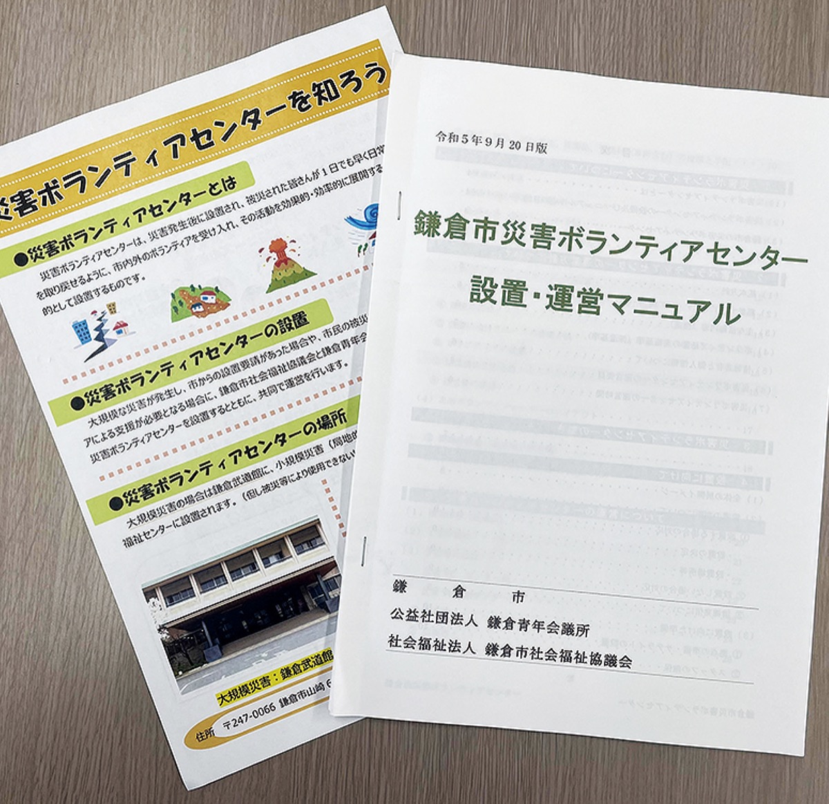 鎌倉市災害ボランティアセンターは、発災後に鎌倉市・市社会福祉協議会・鎌倉青年会議所(JC)が設置を協議し、共同で設置・運営する。3者は2007年に設置・運営に関する協定を締結。23年9月には、鎌倉市独自のマニュアルが完成。他市と比べて遅れはあったが、東日本大震災時に現地センターへサポートに行った職員の経験も参考にしたという。