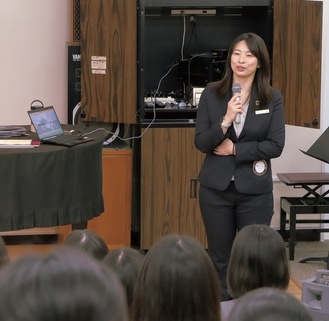 多様な職種の会員が在籍する同クラブは、高校生に将来のヒントを見つけてもらおうと、職業講話を初めて企画。8人の会員が各教室に分かれ、約230人の生徒たちは関心のある仕事をそれぞれ選んで受講した。講師の一人、鎌倉プリンスホテルの薄井茜支配人は「訪れる人を幸せにできるホテルは私にとって最高の仕事」とやりがいを語った。