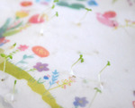 「花咲く和紙」の名の通り、ひと晩水につけて土に埋めると数日で種が発芽し、カモミールなどの花が咲く。紙は、分解され数ヶ月で土に還る。