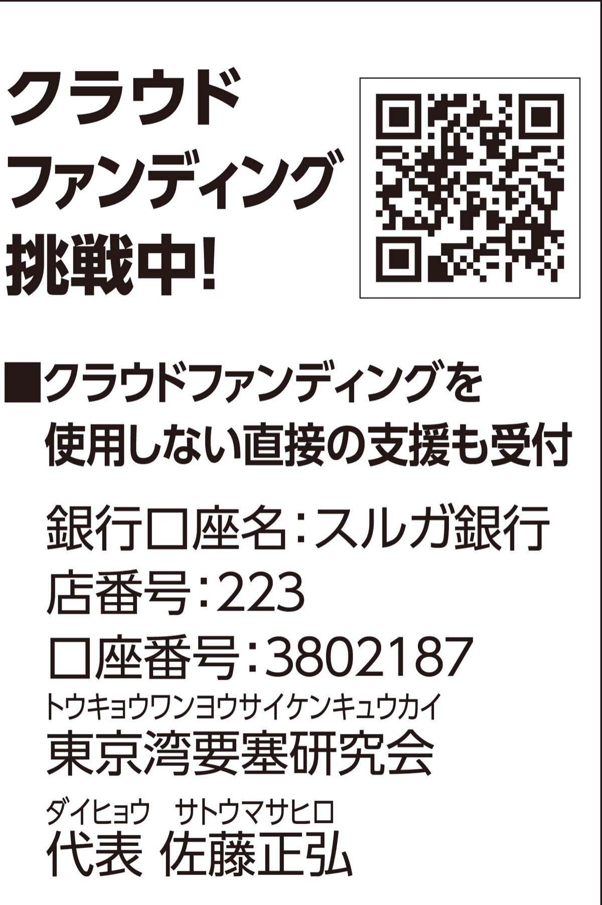 三浦半島に点在する戦跡を自分で歩いて見学することを想定しているが、いつでも見ることが可能な場所だけでなく、管理者への確認や申請が必要なもの、中には立ち入りが制限されているケースもあり、見どころと合わせて注意点などを盛り込んでいく。CFの目標額は50万円。支援者への返礼品として完成本の提供や佐藤さんが案内する戦跡ガイドツアーへの招待などを用意している。CFを通さない直接の応援も募っている。