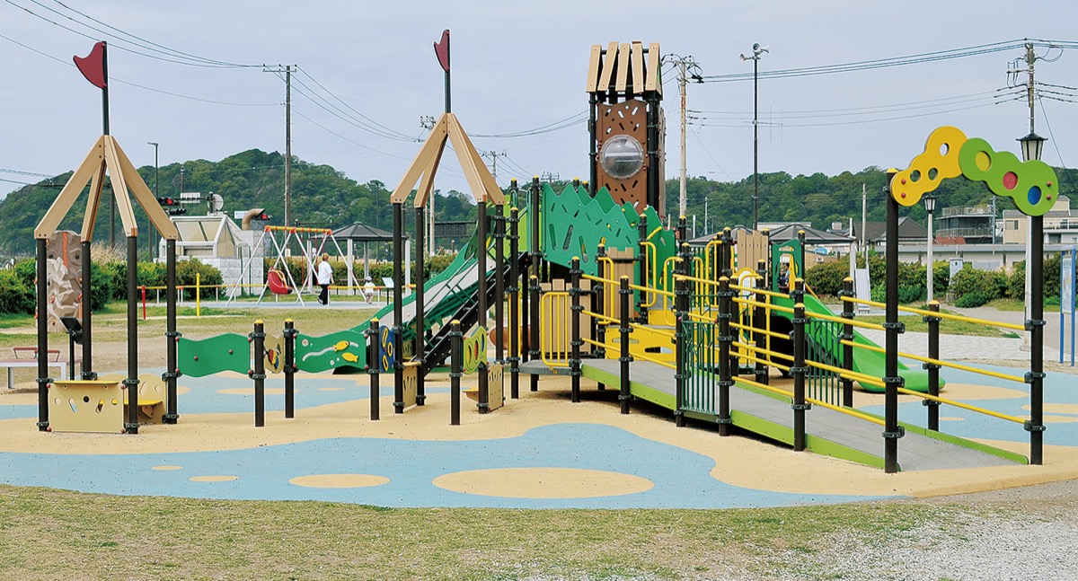 2024年2月にオープンした鎌倉海浜公園由比ガ浜地区のインクルーシブ広場。テーブル型の砂場や車いすのまま入れる大型複合遊具など、障害の有無にかかわらず利用できる「インクルーシブ遊具」が設置されている。見守り用ベンチや休憩用のあずまやも備え、休日にはたくさんの親子連れが集う。誰もが使いやすいことを謳う公園だが、実際の使い勝手はどうなのか、課題はあるのか、調べてみた。