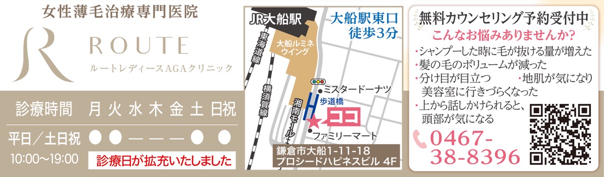 大船駅東口徒歩3分「ルートレディースAGAクリニック」