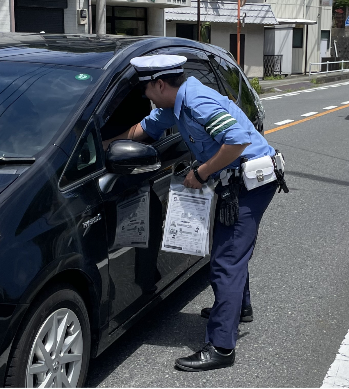 また、信号待ちの車両に警察官が声をかけ、啓発物品を手渡した。
