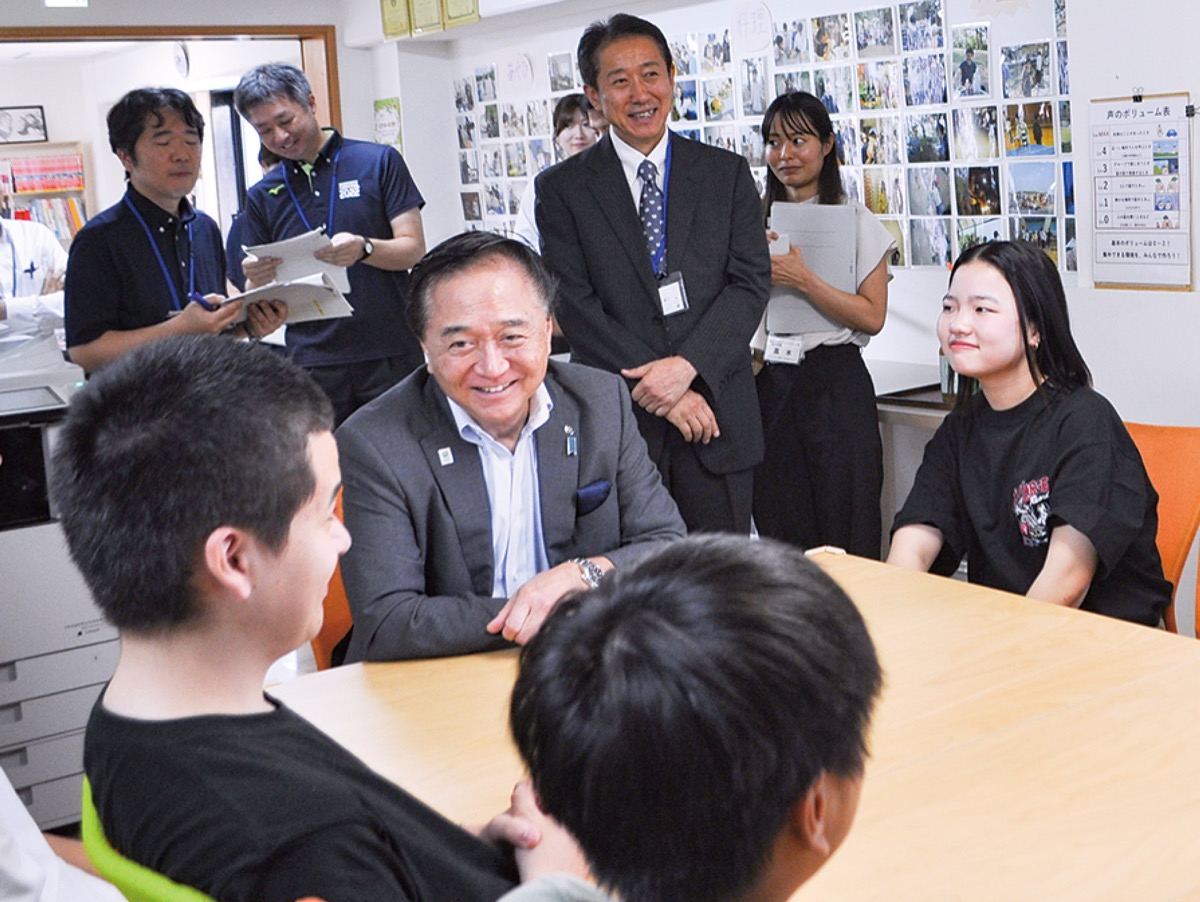 学習支援に加え、ゲームや調理企画など多様な活動を通じて、子どもたちが安心して成長できる居場所づくりを目指す同スクール。当日は、黒岩知事もゲームに加わり交流を深めた。