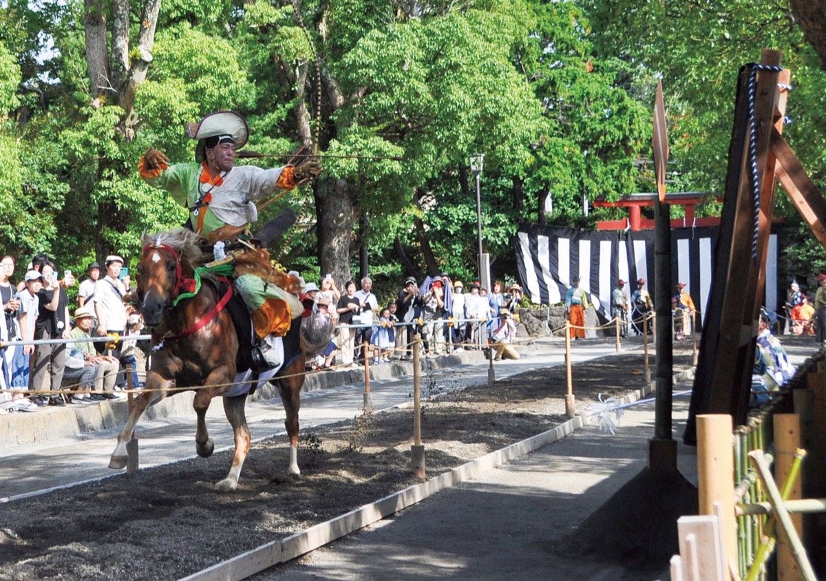 流鏑馬は鎌倉幕府を開いた源頼朝が、天下泰平を祈願して始めたとされる。