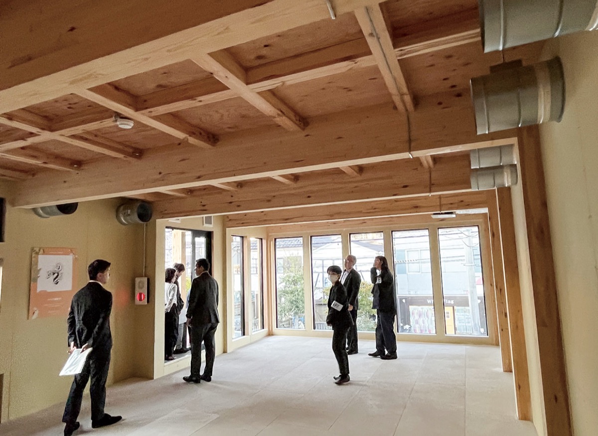 入居に先立ち11月17日に開催された内覧会では、同社や企画・建築設計監理を務める株式会社ブルースタジオ(東京都)の関係者が出席。施設コンセプトや事業概要の説明に加え、こだわりのつまった木製サッシや断熱性能、地域の景観との調和を重視した外観デザインなどの案内が行われた。