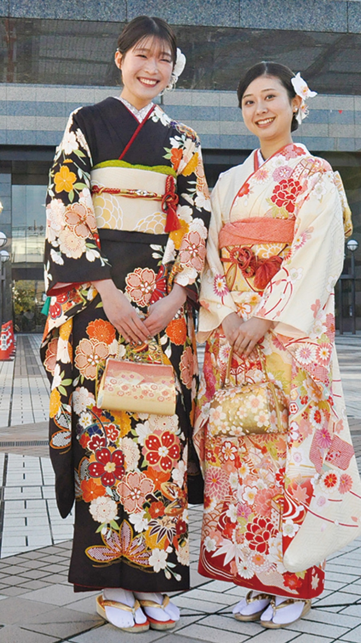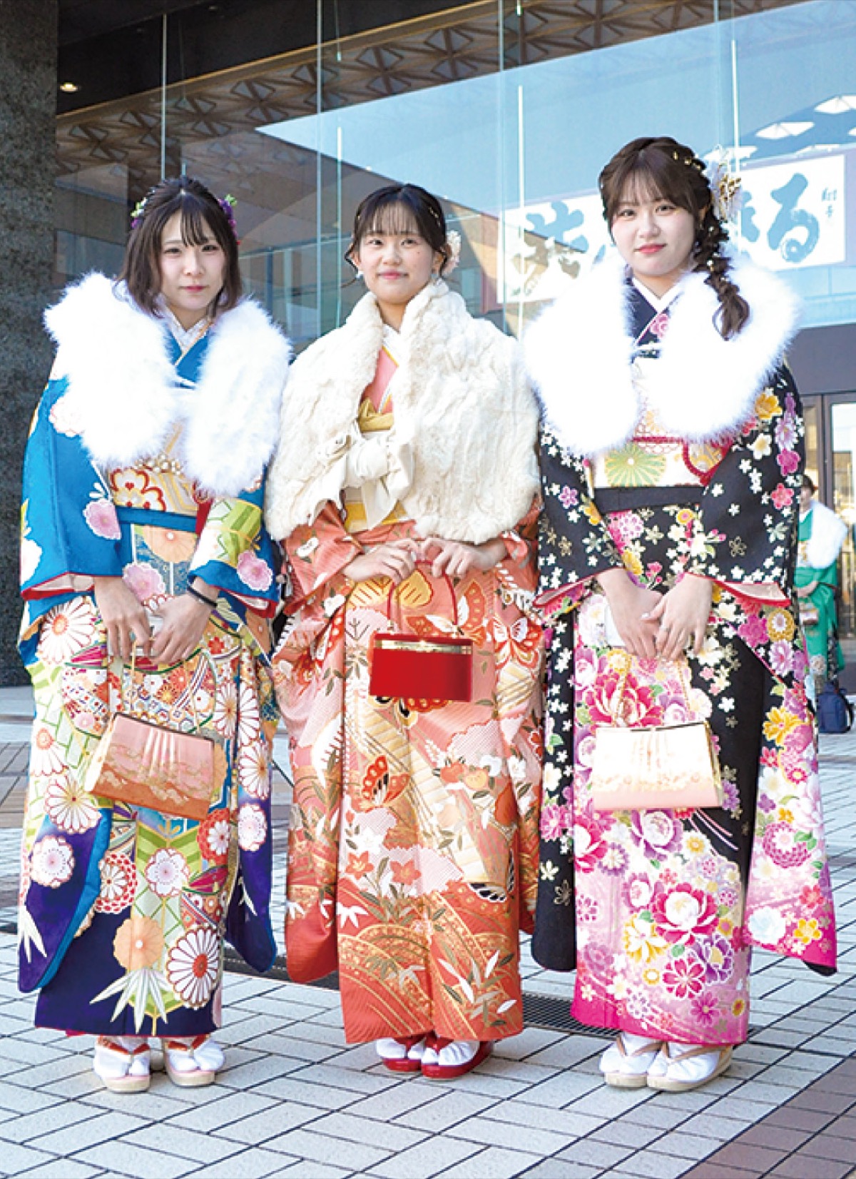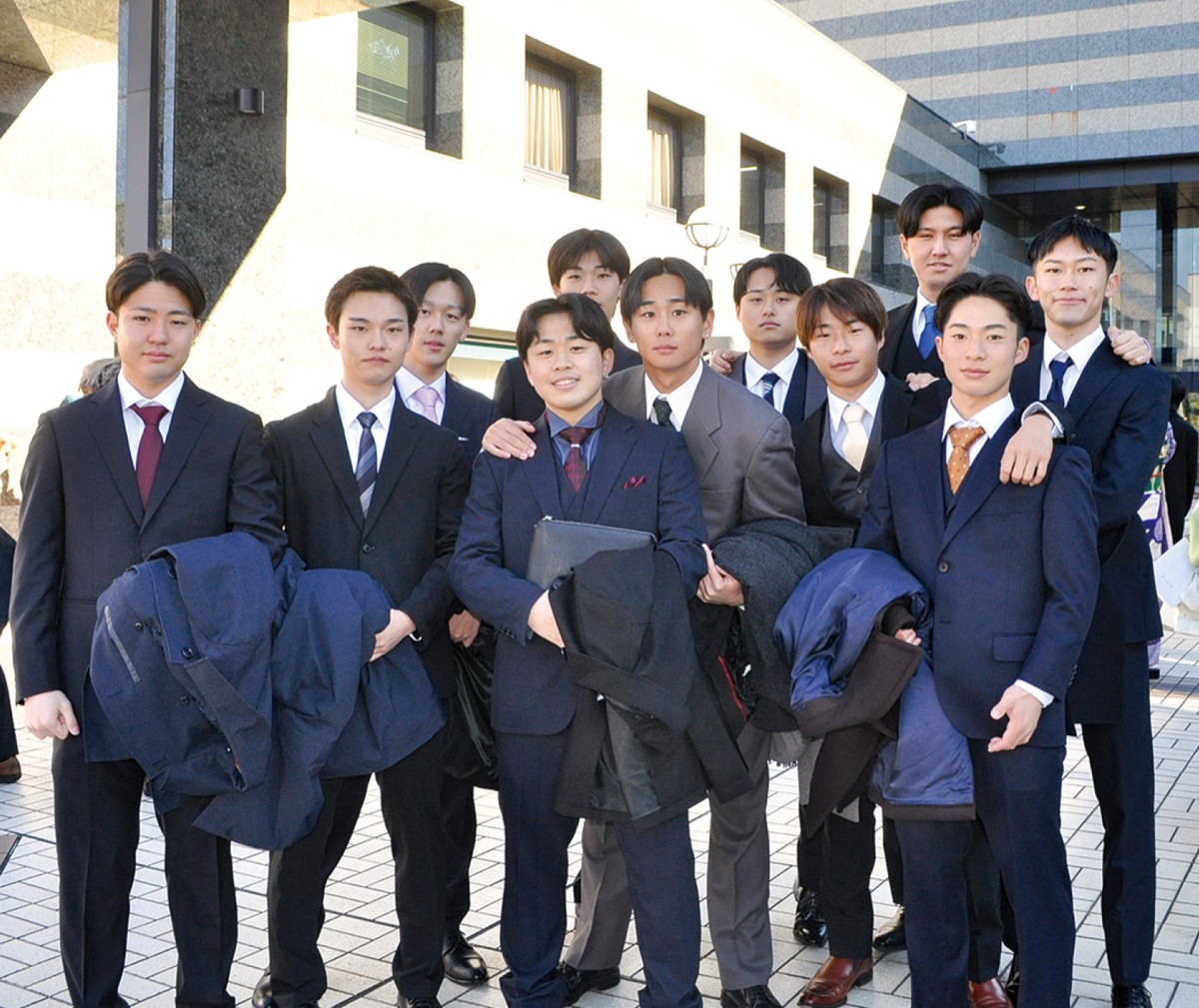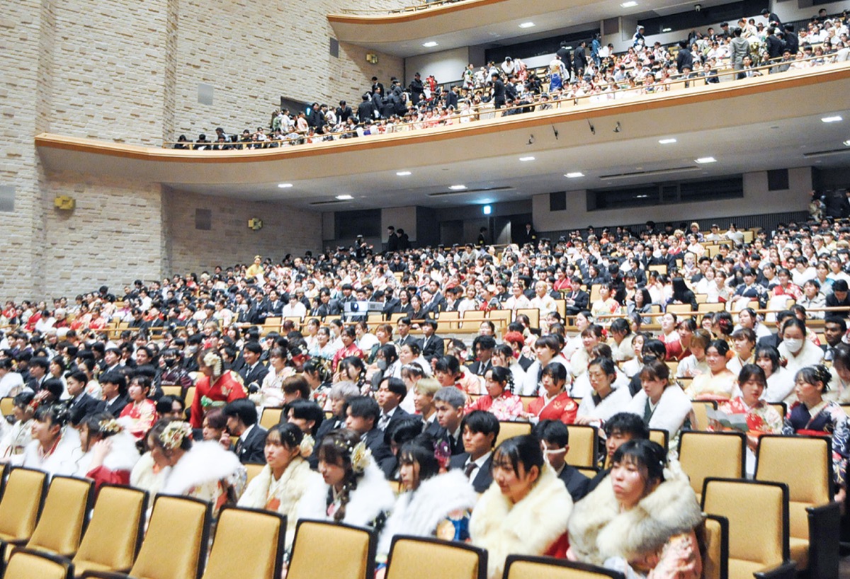 鎌倉芸術館で1月12日、若者の門出を祝う「鎌倉市二十歳のつどい」が開催された。対象者は2005年4月2日から2006年4月1日に生まれた1517人で、式典には1202人が参加。会場は鮮やかな振袖やスーツ姿の若者たちが集い、旧交を温めていた。
