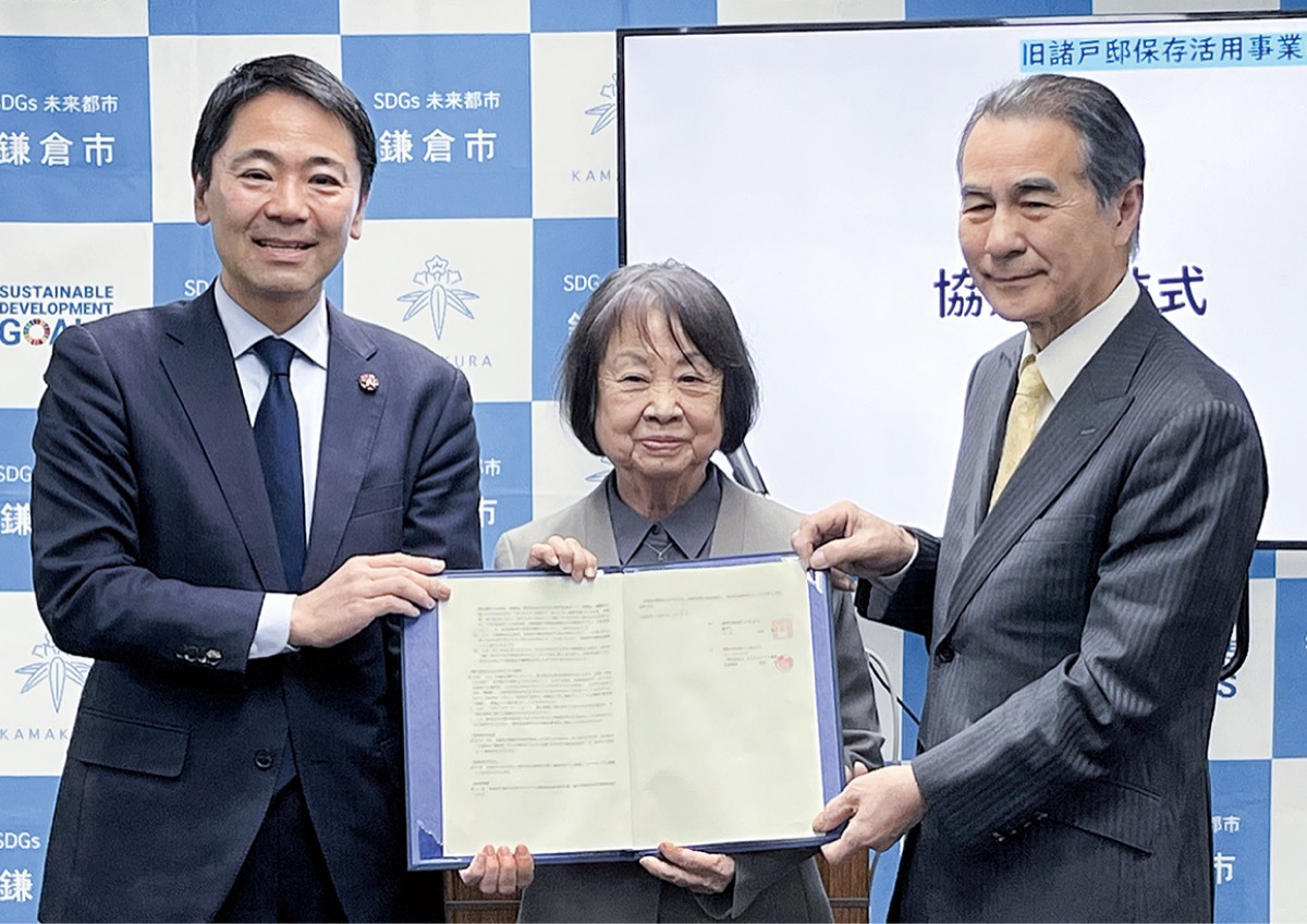 鎌倉市は1月7日、長谷にある国登録有形文化財「旧諸戸邸(旧鎌倉市長谷子ども会館)」の保存活用事業について、(一社)ふらっとカフェ鎌倉(御成町・渡邉公子代表理事)と基本協定を締結した。明治末期の貴重な建築遺産を保存しつつ、新たに「子ども食堂・地域食堂」として利活用し、多世代が交流できる地域拠点の形成を目指す。共用開始は2029年度の予定。