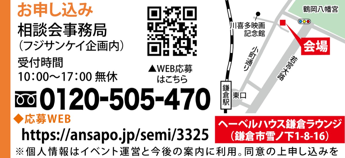 自分の未来、家族のこだわりが詰まった憧れのマイホームを建てたい人も多いのでは。とはいえ「漠然と考えているがプランが気になっている」「今の家に不便を感じているが住みやすくなるイメージがわかない」などの悩みも少なくない。ヘーベルハウスでお馴染みの旭化成ホームズでは未来設計相談会を開催。相談会では住宅建築の専門家が一人ひとりに合った理想の間取りをデザイン。今後の家族の生活空間や暮らしの中で感じている悩みなど、プロならではの視点からアドバイスする。相続した土地や建物で悩んでいる人も相談可能。会場は鎌倉駅東口から徒歩8分。初期検討している人も来場を。