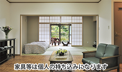 施設では、お元気な方から要介護5の方まで、生活しています。介護が必要な方については、介護者2・5人に対して、介護員1人以上の手厚い介護体制。お元気な方のお部屋にも介護が必要な方のお部屋にも、ナースコールが4箇所あり、24時間の介護体制を整えています。さらに夜間は警備員が敷地内を巡回していますので、セキュリティ対策も万全。入居者は、毎日安心して生活することができます。食事の素材や味付にもこだわり、入居者に安心していただくために、 同施設の栄養士がバランスをしっかりと考え、調理員が家庭的な味を提供しています。
