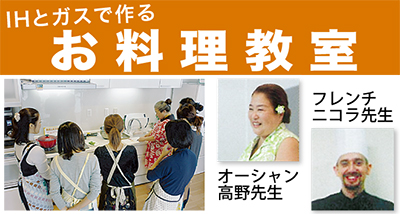 またショールームでは、最新のオールガスキッチンとオール電化キッチンで実際に比較体験をしながらプロのお料理を学べる教室を開催中。参加者からは「設備選びに役立った」と好評な催しとなっている。