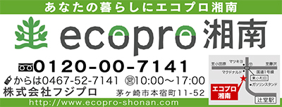 今話題の「太陽光発電」をいち早く商材として取り扱っている(株)フジプロ。同社が運営する『エコプロ湘南』(市内赤松町)は、各メーカーの太陽光発電はもちろん、省エネ給湯器やエネファーム(家庭用燃料電池)など、エコ/省エネ機器を取り扱う体験型ショールームとなっている。