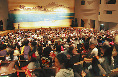 会場を埋めた子どもたちは迫力のある本物の舞台に大喜び。はだかの王様が登場する場面では、どよめきに似た声が会場のあちこちから沸き上がっていた。また、客席にまで降りてきたはだかの王様の姿に驚き、さかんに拍手を送っていた。