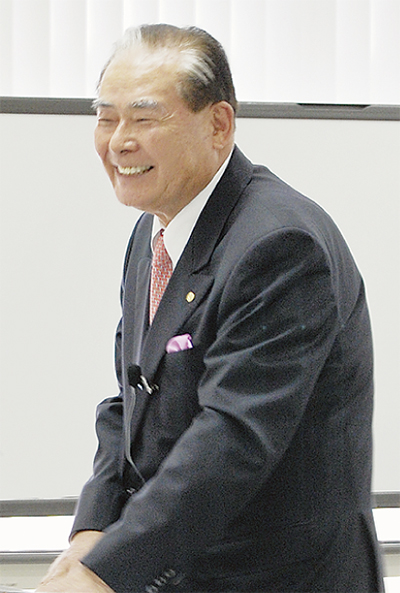 講演後には質疑応答の時間が設けられた。市ゆかりの企業人に直接話を聞けるとあり「無借金経営が出来るのはなぜ」「少年時代に影響を受けたものは」「今後のダンボール業界はどうなる」などの質問が投げかけられ、冗談を交えながら終始にこやかに答えた。