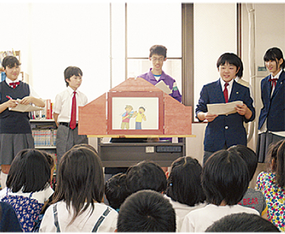 当日は生徒会が中心となった非行防止サミット委員会「そよかぜ」が小学1、2年生の児童らを対象にクイズ形式の紙芝居を披露した。「初めての経験でしたが、皆さんが興味を持って聞いてくれたので楽しみながらできました」と渋谷彩花生徒会長は振り返っていた。