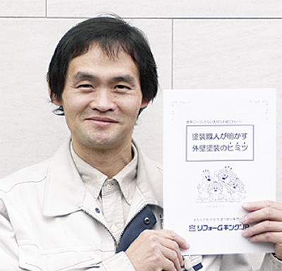 地元横浜の塗替え専門店「リフォームキング」工事責任者末木さんは「外壁塗装は最低3社以上から相見積りをとることが大切」と断言する。「料金は重要ですが、比較のポイントは工事内容、保証システム、アフターサービスの内容です。そして”どうしてこの価格になるのか”という、裏付けも重要。更に自社職人か、下請けか。下請けの場合、コストの面で職人のやる気が違い、仕上がりに直結してしまうためです。また塗装回数や工程ごとの検査、塗料の確認ができるかなども条件です」と話す。