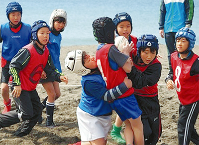 茅ヶ崎ラグビースクールが5月3日、恒例の「ビーチラグビー大会&地引網」を開催した。ビーチラグビーは、茅ヶ崎オーシャンライオンズクラブが後援。