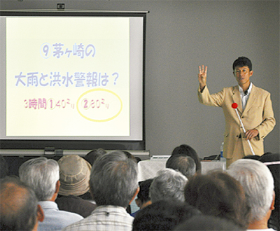 小出地区コミュニティセンターで8月24日、NHK気象情報担当の気象予報士平井信行さんが「気象予報士ウラばなし」を講演した。