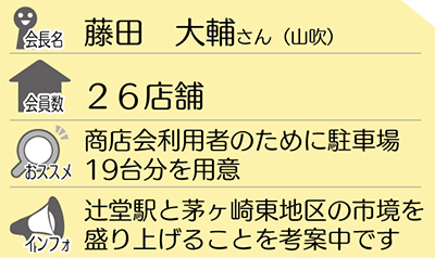 しかし、茅ヶ崎の東側に位置することで、懸念事案もあるという。「この辺りの人々が利用するのは辻堂駅で、そこは藤沢市に位置しているのでね」と語る会長は、市境にある商店を活発化させる「辻堂LOVERS(ラバーズ)」の代表として日々活動している。「この地域の店長らは自分を含め若手が多い。諸先輩たちからたくさんの事を学んで、発展させたい」と意欲を語った。