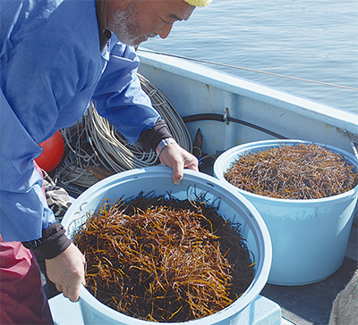 このほど茅ヶ崎沖烏帽子岩周辺でひじき収穫が解禁となった。
