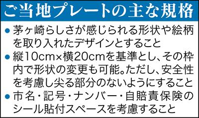 茅ヶ崎市は、原動機付自転車(原付バイク)のご当地ナンバープレート導入に向け、デザインの募集を始めた。採用プレートは5月に発表され、10月からの交付を予定している。