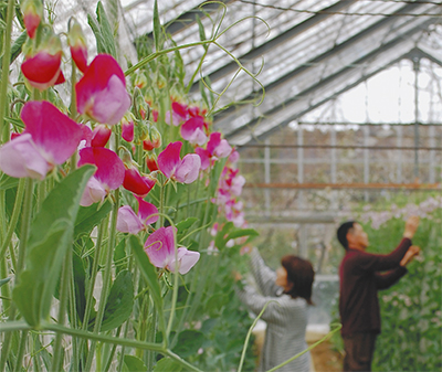 市内では計4農園で出荷用スイートピーを育てており、今年の生育は例年より少し遅めだという。