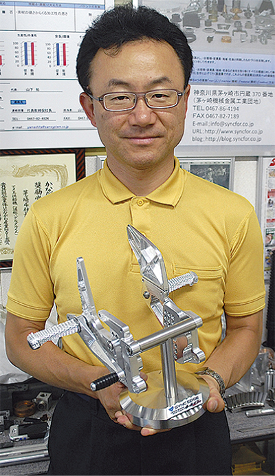 市内円蔵にある精密部品加工会社「(株)シンクフォー」代表取締役の山下祐さん(46)=柳島在住=がチーム監督としてオートバイの全日本ロードレース選手権に参戦している。