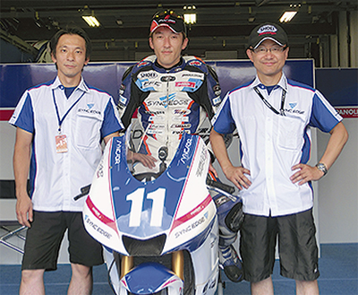 山下さんが率いる「シンクエッジ4413レーシング」はライダーの星野知也選手、メカニックの高村嘉寿さんを中心とした2年目のチームでJ-GP2クラスがレースの舞台だ。ボランティアスタッフや賛同する企業、仲間などの支えで選手権に参加している。