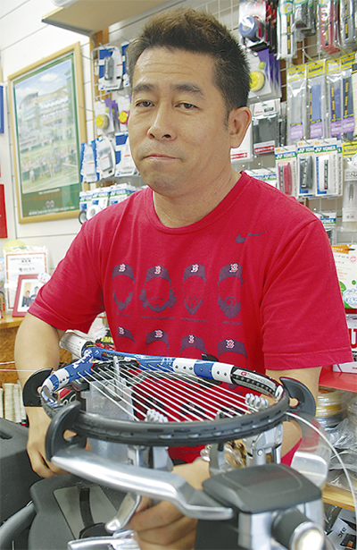 普段はサザン通り(中海岸)のテニスショップ「オンコートラケット」の店主を務めながら、国際大会に出向きプロ選手のラケットをサポートしている細谷さん。今大会ではオフィシャルストリンガーとして「日本人同士コミュニケーションを取りやすいということで、錦織選手ら日本人選手のガットを主に張り替えました」。元々は準決勝前に帰国する予定だったが、錦織選手が勝ち進むのを受け、急遽滞在日程を延長。決勝などでは「緊張感漂う試合中のセンターコートにラケットを届け、足が震えましたね」と振り返る。