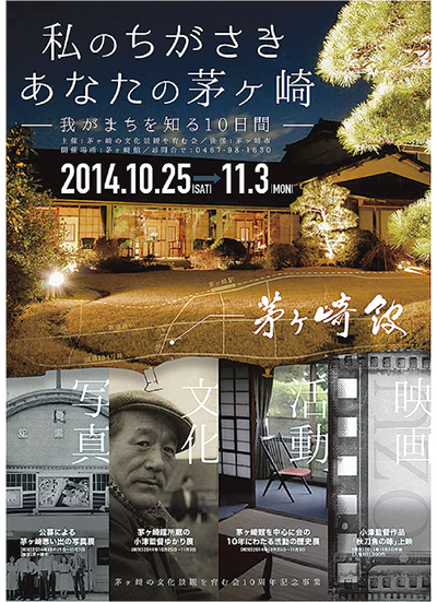 活動開始10周年を迎えた茅ヶ崎の文化景観を育む会(山口洋一郎会長)の記念事業「私のちがさき あなたの茅ヶ崎-我がまちを知る10日間-」が、10月25日(土)から11月3日(月・祝)まで国登録有形文化財に指定されている茅ヶ崎館(中海岸3の8の5)で開催される。時間は午前11時から午後4時まで。入場無料。