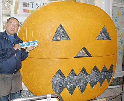 茅ヶ崎駅北口のエメロード沿いの茅ヶ崎ショッピングセンター前に発砲スチロール製の巨大カボチャが出現した―。