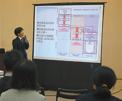 今回の意見交換会は、市民活動をめぐる社会状況が変化したことや、制度における課題が顕著になってきたことを受け開かれた。市市民自治推進課担当者がこれまでの取り組みを検証するとともに、「協働推進事業として実施すべき事業の領域が不明確」「事業終了後の展開はどうするのか」といった疑問が事業実施団体から挙げられていることを説明。当日参加した市民からも補足の質問や意見が述べられ、制度の見直しについて意見が交わされた。今後は市民活動推進委員会による審議や、制度改正案についてのパブリックコメントなどを経て庁議にかけられるという。
