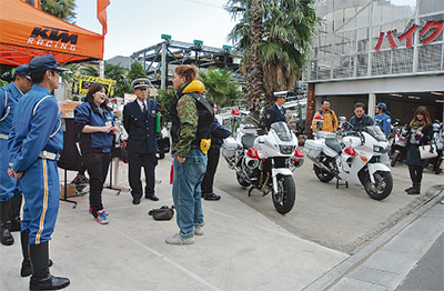 白バイ展示で賑わう
