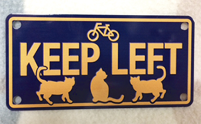 「地域猫ボランティア」とは、地域の合意の下野良猫を飼育・管理し、これ以上繁殖しないよう不妊去勢手術を進めているもの。行政や自治会から手術代などの支援を受けているが、医療費や餌代は寄付金やボランティア自身の負担が現状。寄付金付きプレートは1000円(本体700円+寄付金300円)。プレートは「KEEP LEFT」の文字とともに猫の姿があしらわれたデザイン。同会場のほか、エスニックファインド(東海岸北4の16の2)などで取扱っている。問い合わせはファインド【電話】0467・88・2493へ。