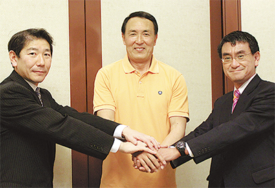 来たるべき高齢化社会を見据え、それぞれの立場で施策に取り組む河野太郎衆議院議員と佐藤光県議会議員。今回はパルバル湘南スポーツクラブの水本さだひろ前代表取締役を交え、鼎談(ていだん)を行った。水本氏が唱える、元気な高齢者を増やしていこうとする取り組みには今後の茅ヶ崎のまちづくりの大きなヒントがありそうだ。