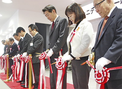 松浪コミュニティセンター(茅ヶ崎市常盤町2の2・県営住宅茅ヶ崎テラス跡地)の竣工式が3月21日に行われ、服部信明茅ヶ崎市長や広瀬忠夫市議会議長ら来賓約80人が出席した。