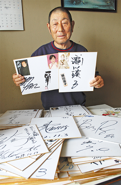 有名人や夢を追う人のサインを集めている武田陽二さん(72)=市内浜見平在住。オリンピック出場選手や歌手、俳優やお笑い芸人など、幅広く集めたサインの数がこのほど1000を超えたという。