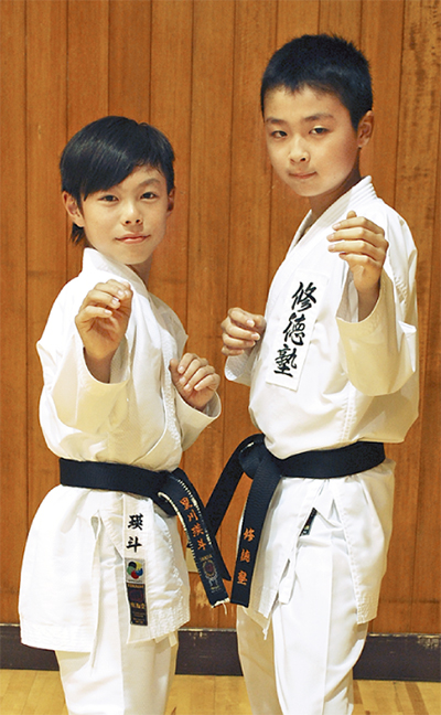 全日本空手道連盟・修徳塾茅ヶ崎(佐藤明人代表)に所属する三川弦大君と黒川瑛斗君(ともに香川小6年)。7月5日に行われた関東大会に三川君が、名古屋で開催された大会には黒川君が出場しそれぞれ活躍した。三川君は8月8日(土)の全国大会にも出場する。