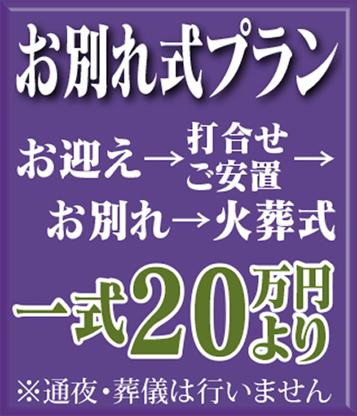 「家族葬」といっても多種多様で、一概には言えません。通夜、葬儀、告別式で故人を送る宗教色を含めたものもあれば、お別れ式だけを行う、宗教色のないものがあります。葬儀内容も特に決まったものがないので、まずどういう葬儀にしたいかという「想い」から伺っていきます。